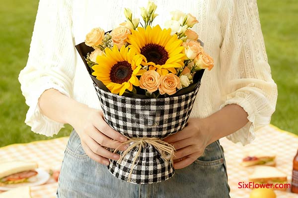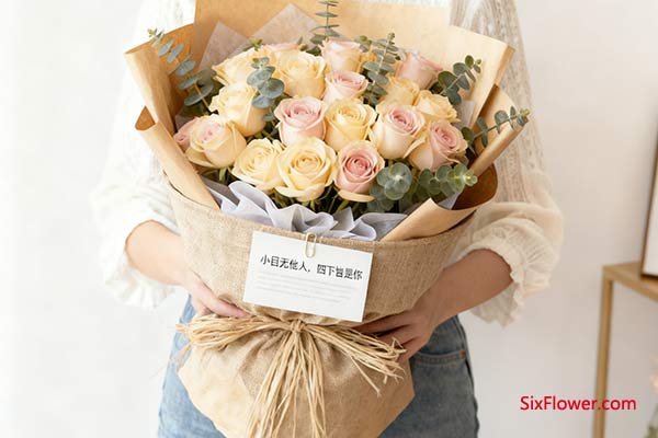 送给闺蜜/女性朋友: 一束以向日葵和香槟桔梗为主的阳光花束,或用粉玫瑰与白色洋桔梗编织的温柔花束,搭配小香风或韩式包装,都能完美契合彼此的情谊。