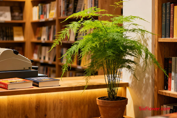寓意:文竹身形飘逸,姿态文雅,其名中带“文”,与书店的气质天然契合。它象征着永恒、纯洁和深厚的情谊,寓意店主品味高洁,也祝福书店能汇聚文人雅客。